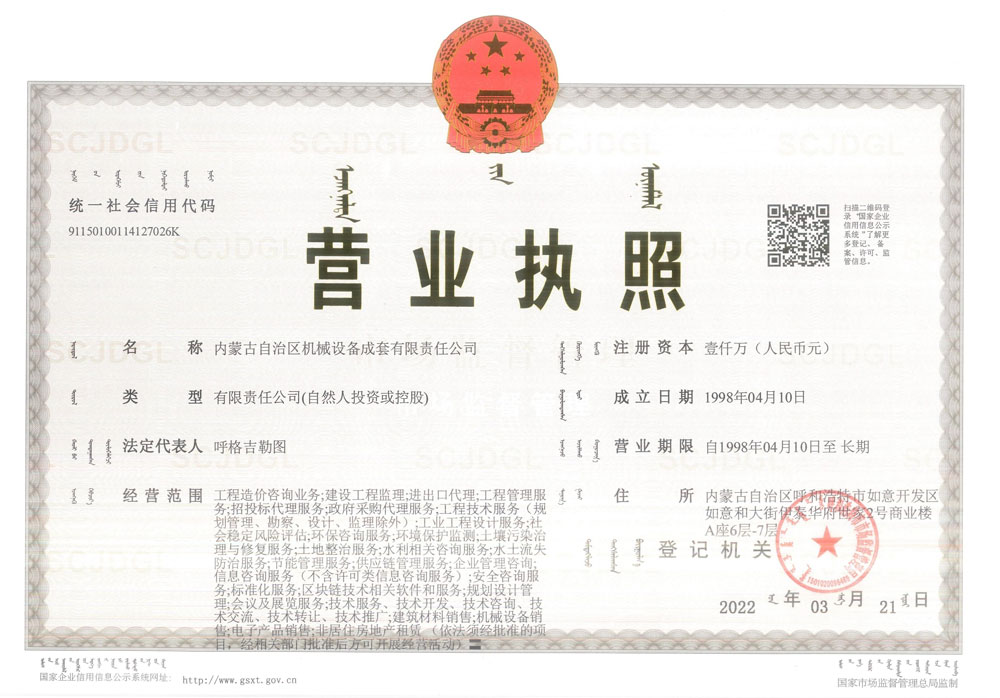內(nèi)蒙古自治區(qū)機(jī)械設(shè)備成套有限責(zé)任公司營業(yè)執(zhí)照